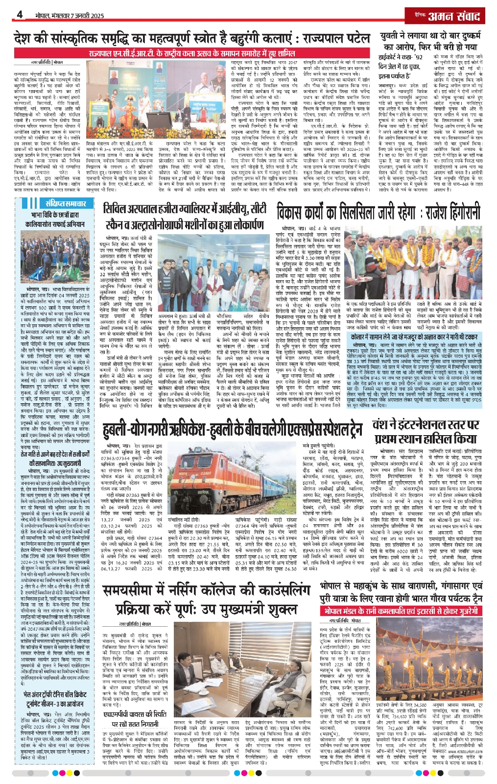 dainik aman samvad newspaper Bhopal 07 january 2025 edition. January 06, 2025 • dainik Aman samvad newspaper Comments